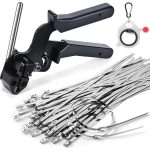 Този комплект инструменти включва здрав пистолет за кабелни превръзки и 100 висококачествени неръждаеми стоманени превръзки, идеални за стоманени ферми и различни задачи.