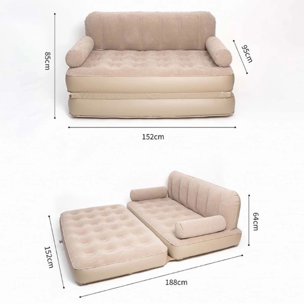 🛏️ Надува се бързо и лесно за уютен сън, след което се сгъва в диван, за да се отпуснете.