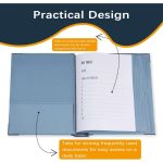Включва 10 разширяеми плика (6 пълноразмерни, 4 полуразмерни), които побират до 10 листа всеки.
