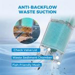 Улавя отпадъци и остатъци от храна, за да поддържа водата в аквариума кристално чиста.