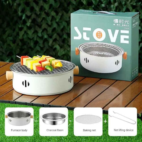 Изграден с удебелена неръждаема стомана и устойчивост на високи температури, този мини грил за дървени въглища предлага дълготрайна работа.