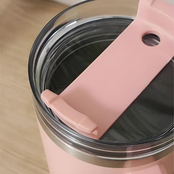 Край на мокрите чанти или седалки в колата. С херметичен капак и сигурен отвор за сламка, можете спокойно да я хвърлите в раницата си или да я държите на бюрото си.