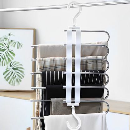 Уверете се, че дрехите ви са спретнати и лесно достъпни. Оптимизирайте организацията на гардероба си с универсалната 5-степенна закачалка за панталони, проектирана да побира различни дрехи.