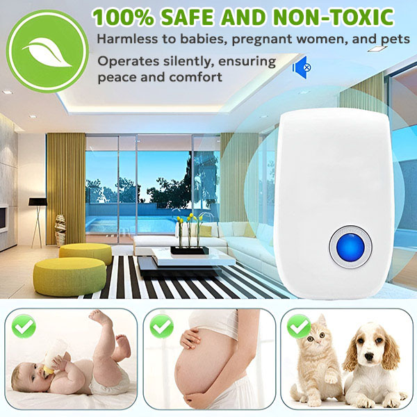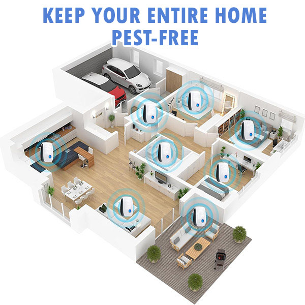 Честотният диапазон 22-65 KHz е напълно нечуваем за хора, кучета, котки и повечето домашни любимци – той засяга само нервната система на гризачи, насекоми и паякообразни. Без токсични остатъци по повърхностите, без изпарения във въздуха, без риск за децата, пълзящи по пода. Включете, оставете да работи 24/7 и защитата е непрекъсната с нулева поддръжка.