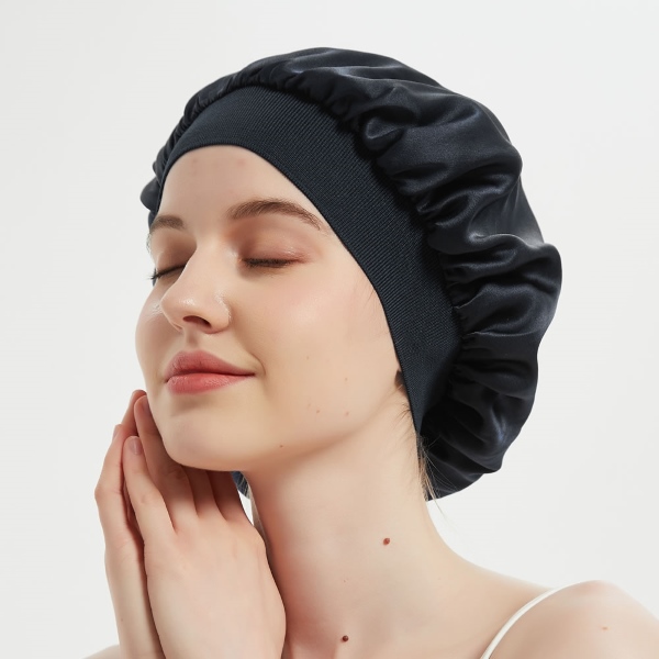 Boneta noastră prezintă un design cu margine largă, realizat dintr-un material satinat premium, asigurând un confort ultim fără a sacrifica stilul. Banda largă este concepută să se întindă pentru o potrivire personalizată, oferind protecție luxoasă și sigură pentru păr.
