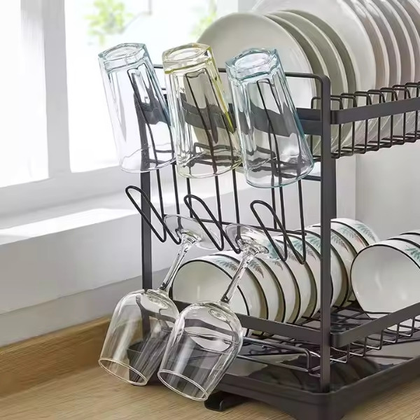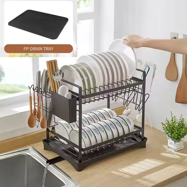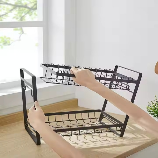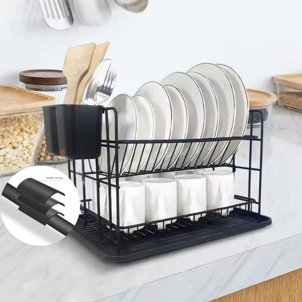 Кажете сбогом на безпорядъка! Тази поставка за отцеждане на чинии поддържа кухнята ви подредена, като позволява на чиниите, купичките и приборите да съхнат ефективно, като същевременно остават спретнато организирани.