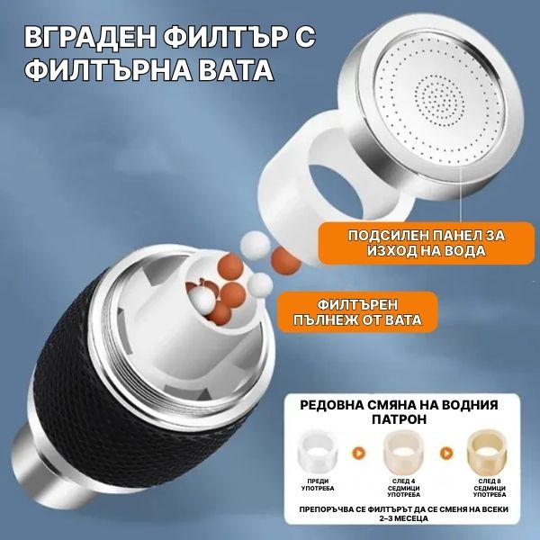 Не е необходим водопроводчик! Просто свалете настоящия си аератор и завъртете адаптера FAUCETI.