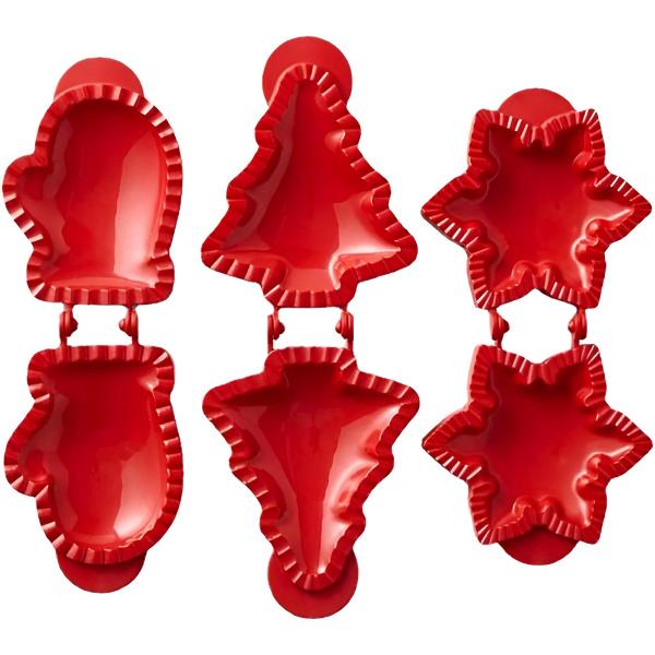 Добавете уникален, празничен щрих към вашите пайове с три вълнуващи форми – снежинка, ръкавица и коледна елха.