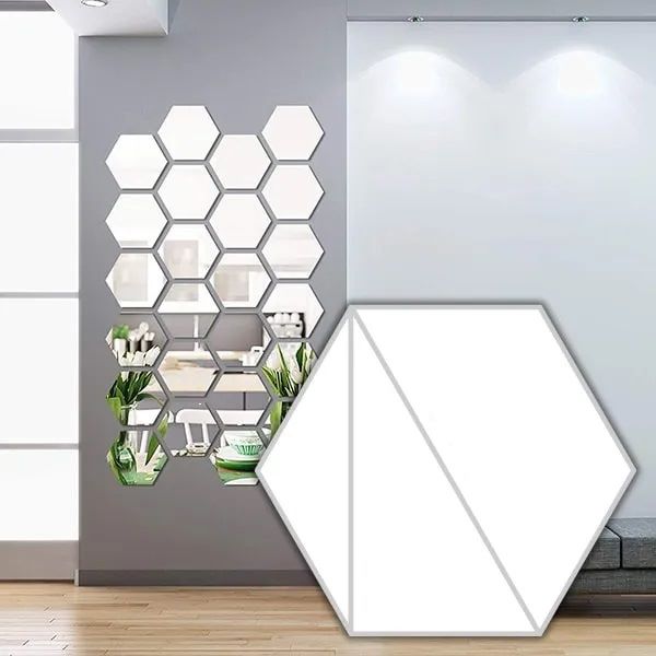 Самозалепващите се шестоъгълни огледални стикери са декоративно допълнение, което незабавно подобрява външния вид на дома ви. Това е достъпен и елегантен начин да украсите стените си.